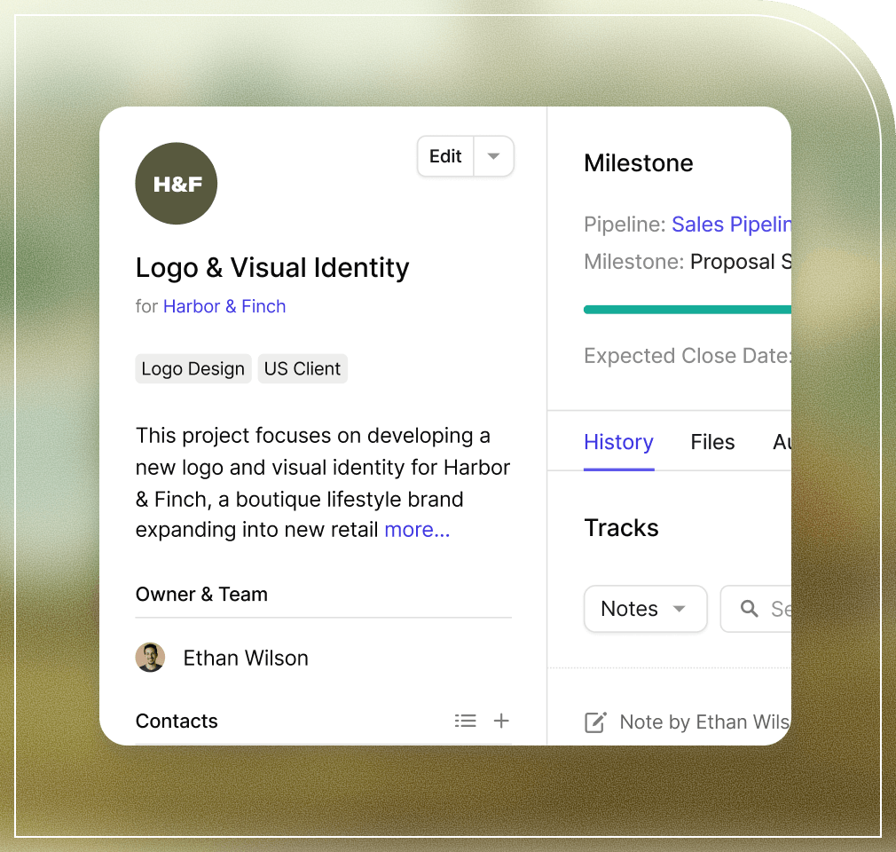 Automatize tarefas tediosas como e-mails de acompanhamento, fluxos de trabalho de projetos padrão e muito mais, para que você possa passar mais tempo com seus prospects e clientes (ou fazer uma pausa real para o almoço)